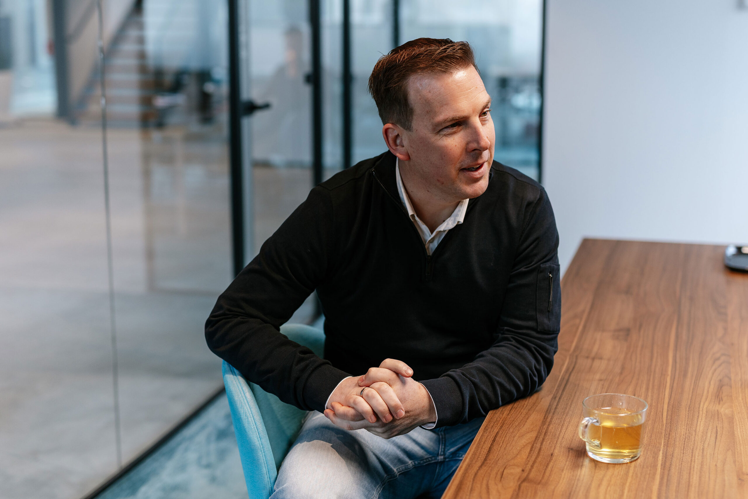 Na een ronde door het vernieuwde restaurant rijden we terug naar het kantoor van ADSR. In een van de moderne vergaderruimtes vervolgen we het gesprek. Buiten blijft het grijs, binnen gaat het gesprek over aandacht.