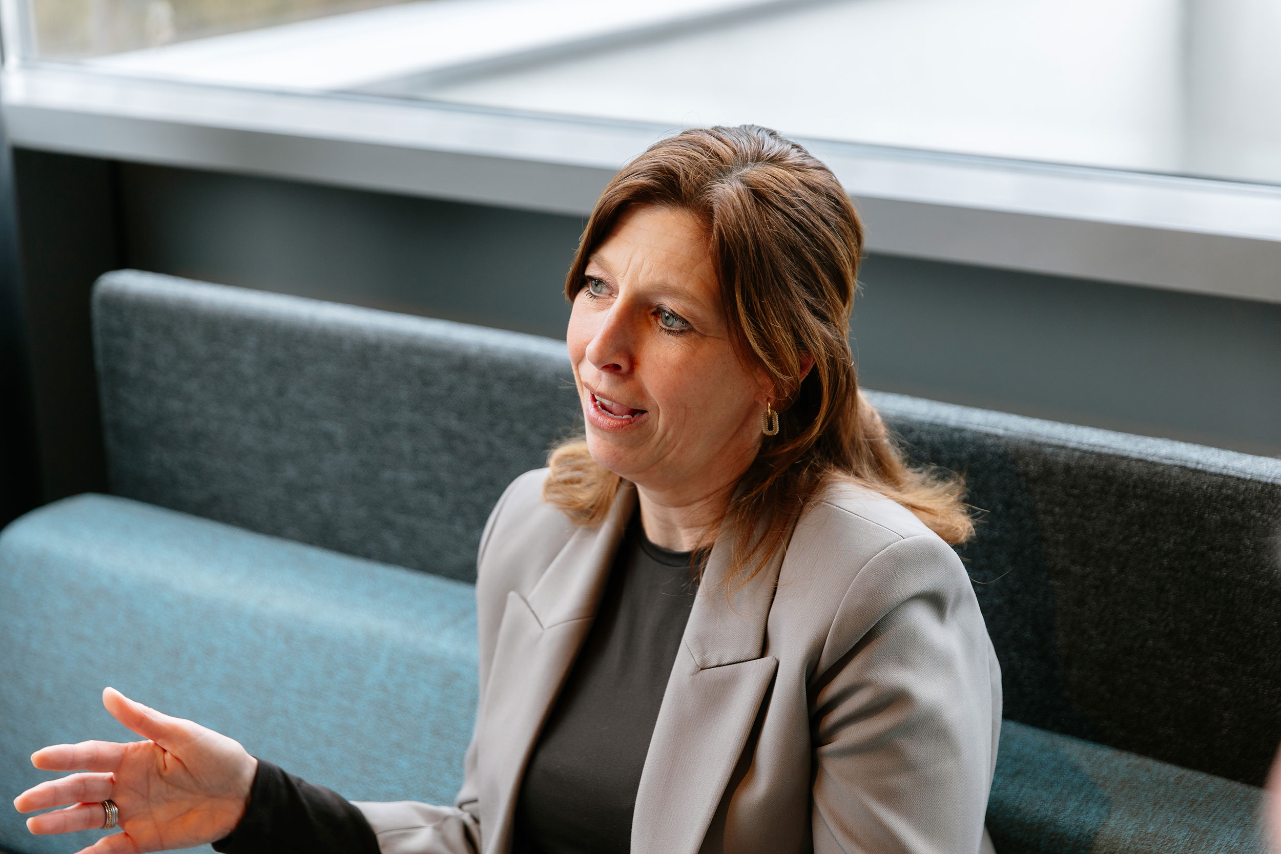Wat in het nieuwe pand direct opvalt, is de openheid. “Je ziet en spreekt je collega’s meer,” zegt Bianca. “Dat was daar niet zo.”